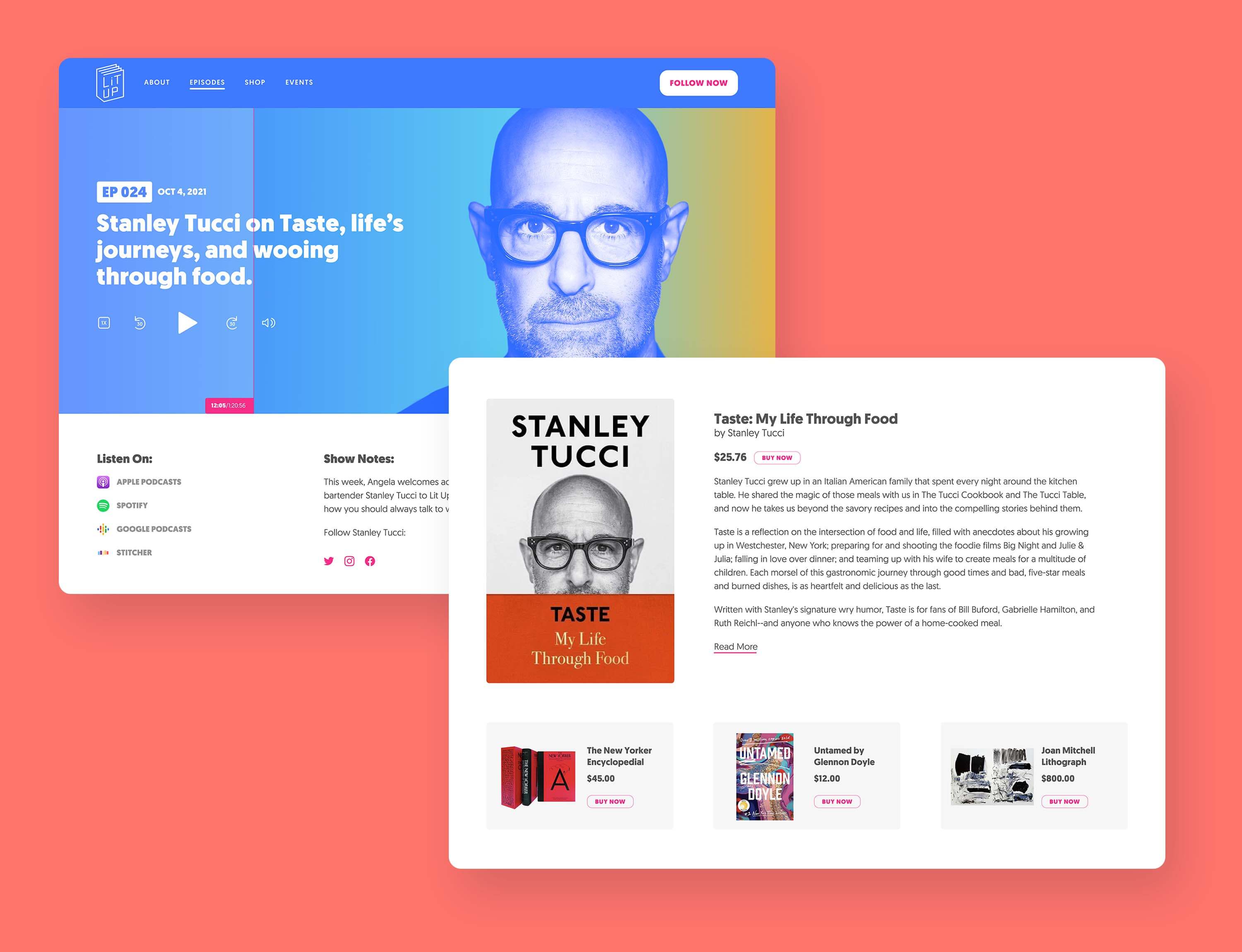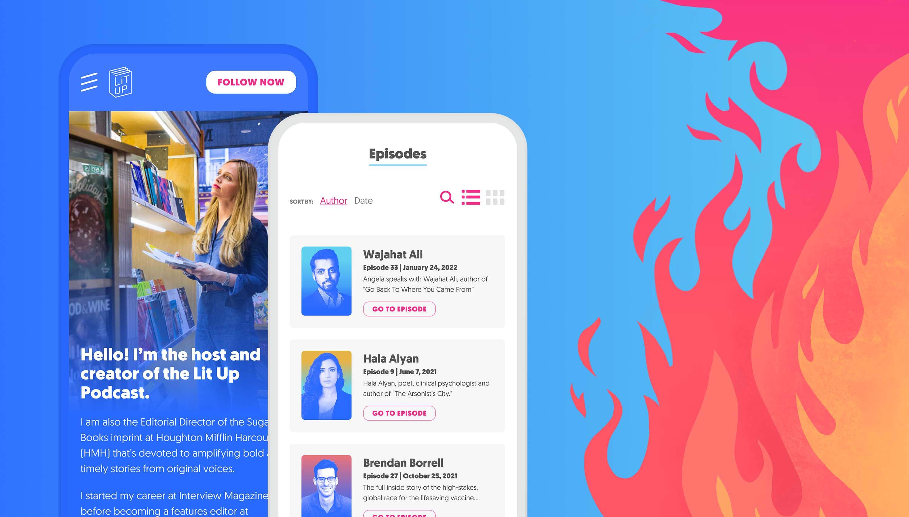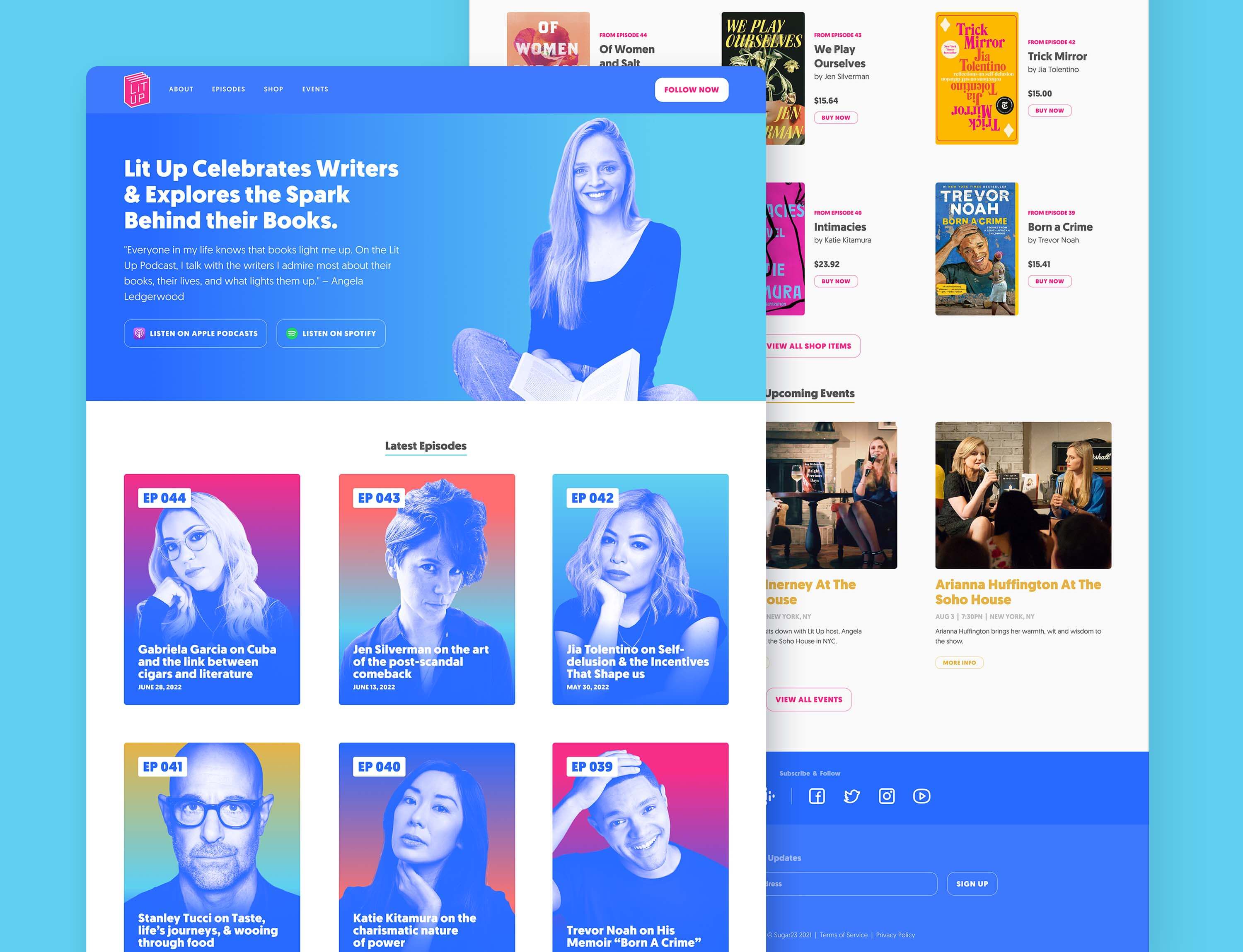 Branding and website design for Sugar23's first ever podcast offering. Lit Up is a weekly conversational podcast. Angela Ledgerwood talks with the writers she admires most about their books, their lives, and what lights them up.